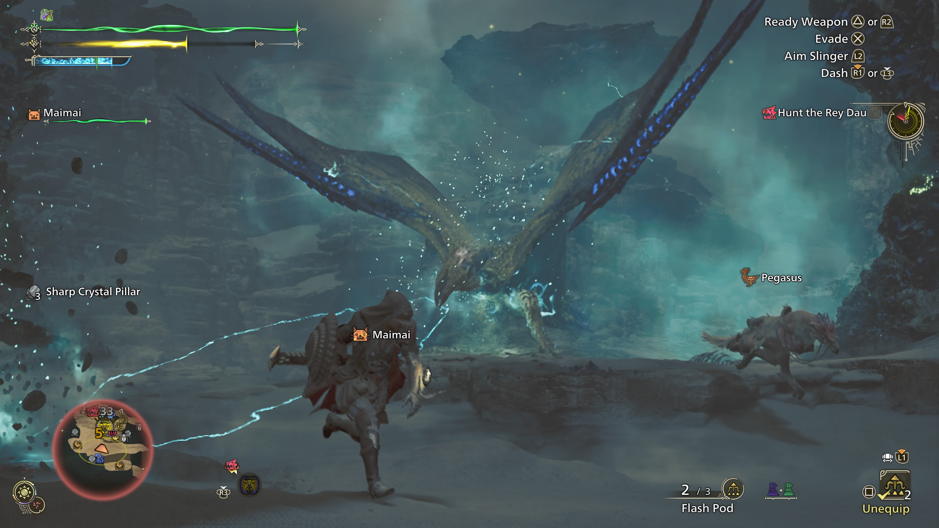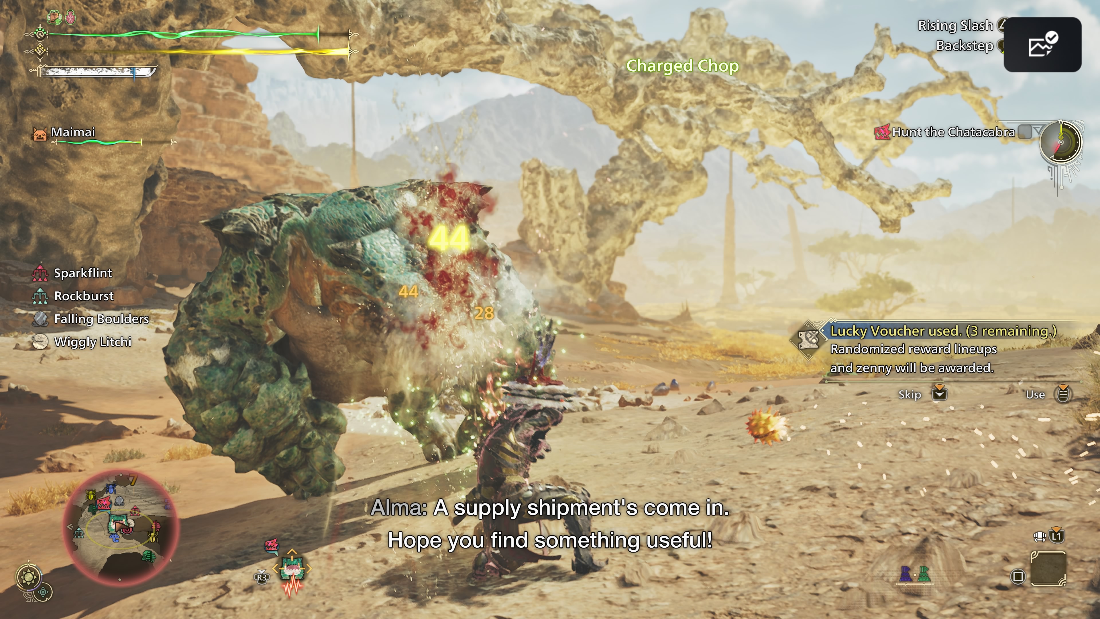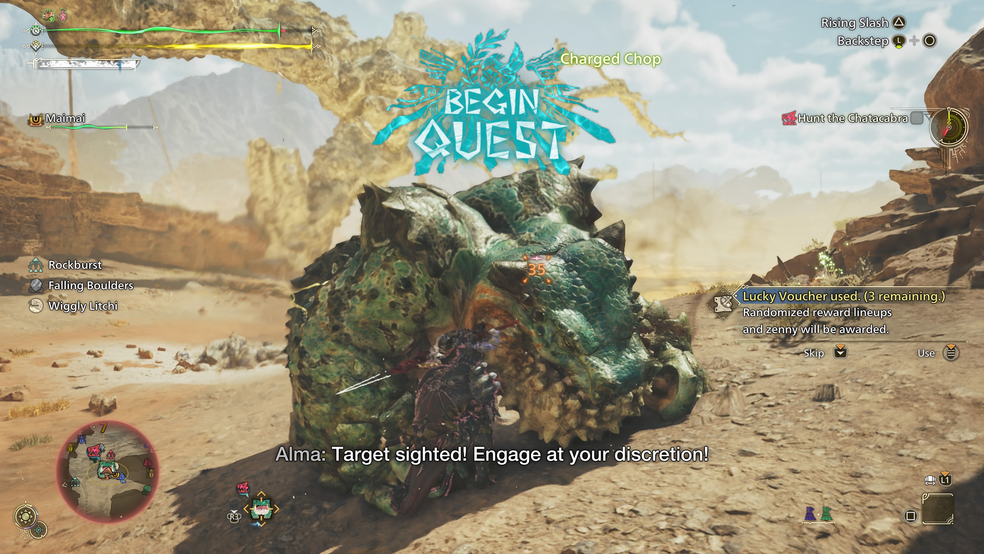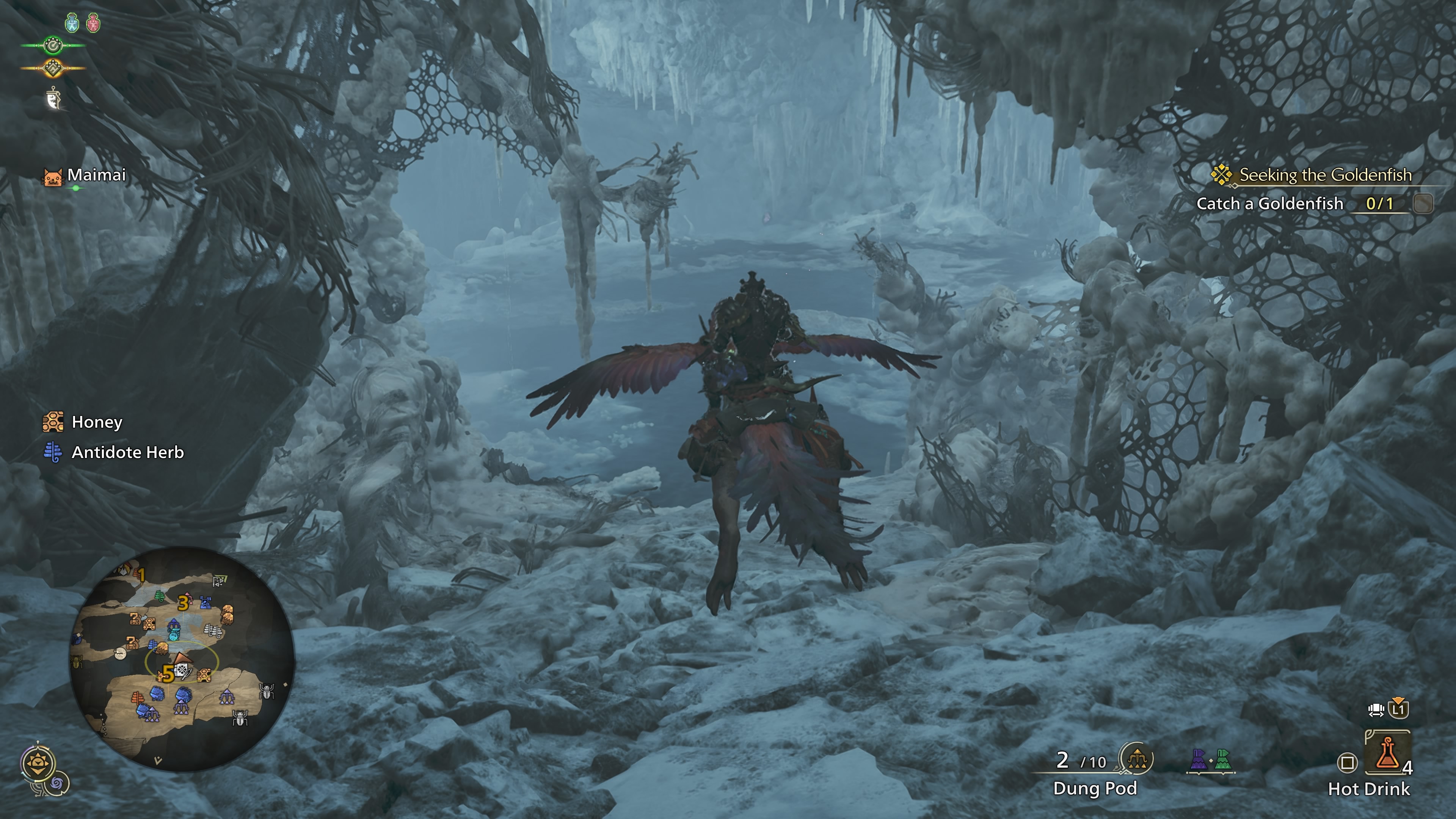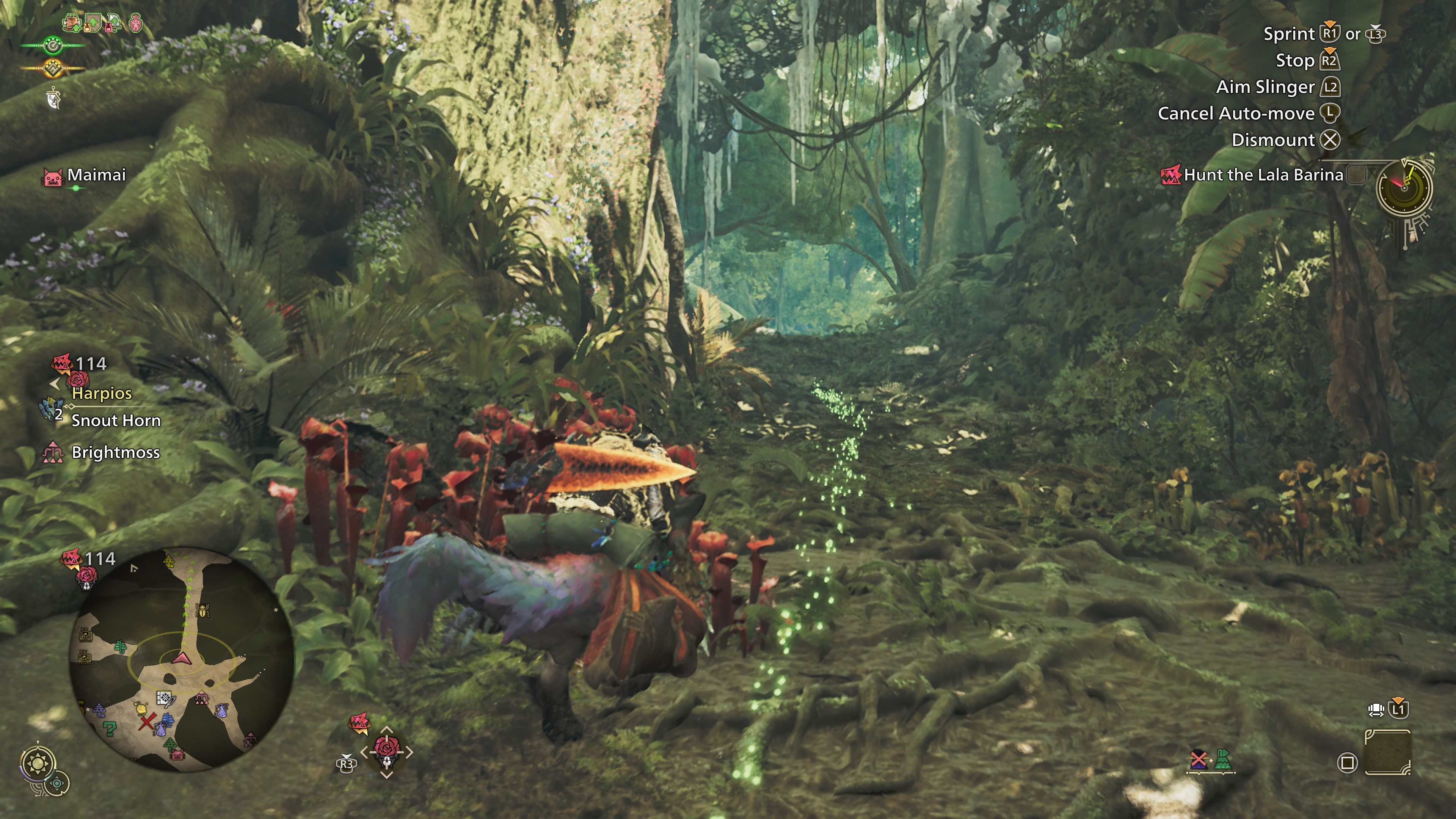 In den Biomen laufen dazu immer der Region heimige große Monster herum, die bekämpft werden können. Auf der Karte seht ihr die jeweiligen Monster ihren Tag genießen. Ihr könnt den Monstern einen Strich durch die Rechnung machen. Greift ihr sie an, startet automatisch eine Quest. Ihr habt nun eine bestimmte Zeit, um das Monster zu besiegen und zusätzliche Belohnungen für einen erfolgreichen Abschluss zu erhalten. Bislang wurde man nach einer Quest immer zum separaten Hub des Spiels teleportiert. In Wilds geht es nahtlos in der offenen Spielwelt weiter. Ob ihr nun also das nächste Monster ansteuert, weiter erkundet oder zum Lager zurückkehrt, ist euch frei überlassen. Eine gelungene Neuerung, die sich sehr gut in das offene Design des Spiels einfügt und so den Spielfluss aufrechterhält.